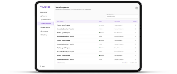The operator portal enables service providers to manage customers, activate and configure services, control assistant types, monitor resource usage, and review operational and reporting data.